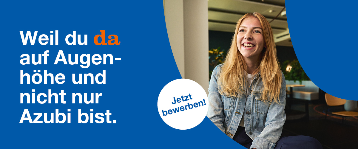 - Einführungswochen mit deinen Azubi-Kollegen, damit du unbesorgt und voll motiviert in die Ausbildung starten kannst;